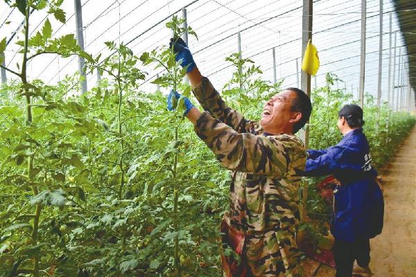 2月20日,南和区河郭镇辛庄村农民在蔬菜大棚内管护西红柿。 近年来,南和区因地制宜引导农民发展蔬菜种植,目前全区共发展蔬菜种植11万余亩,覆盖8个乡镇50多个村,有效带动农民增收。邱洪生摄