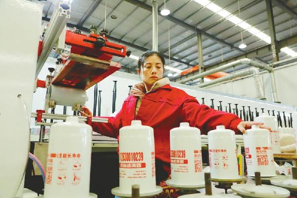 工人在滤清器生产车间作业。魏宝爱、王琳摄