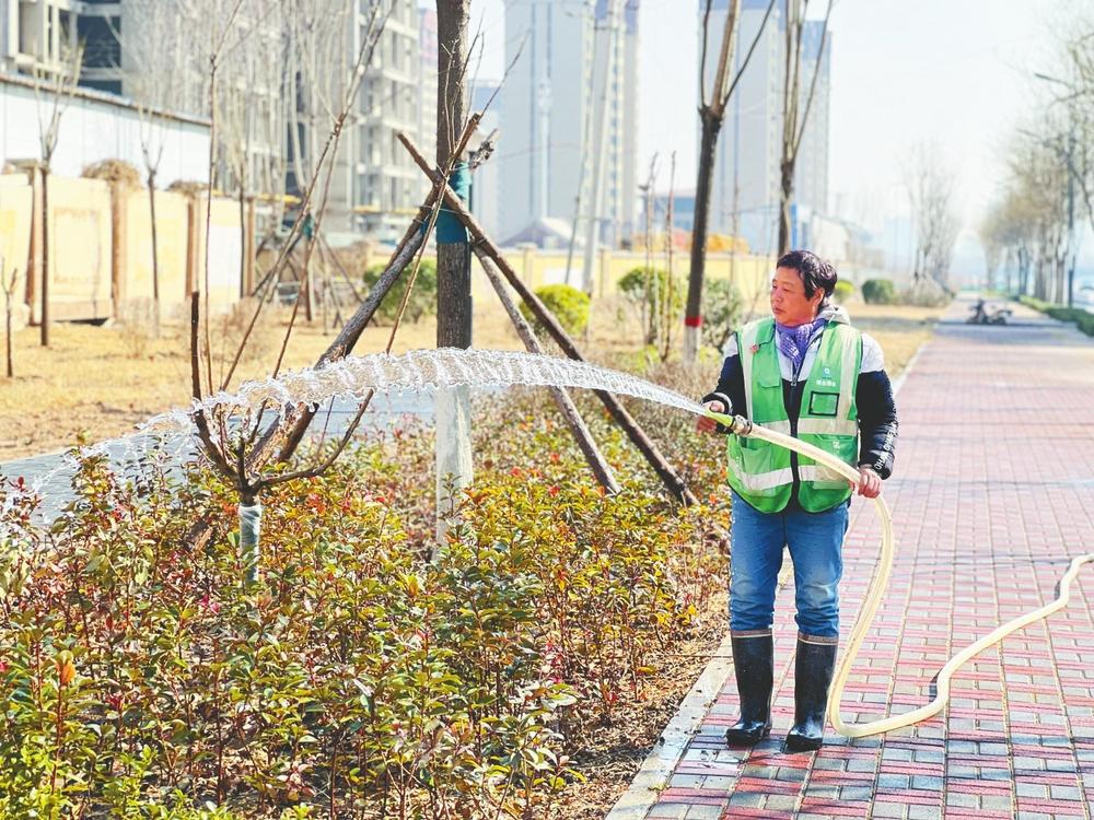 近日,在广宗县曹家寨村的油蟠桃种植基地,农民正在给桃树挂枝。