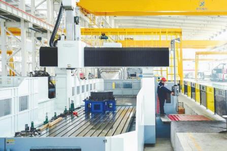 近日,在市经开区的河北新珑智控科技有限责任公司,工人在利用龙门式数控镗铣床加工智能设备部件。