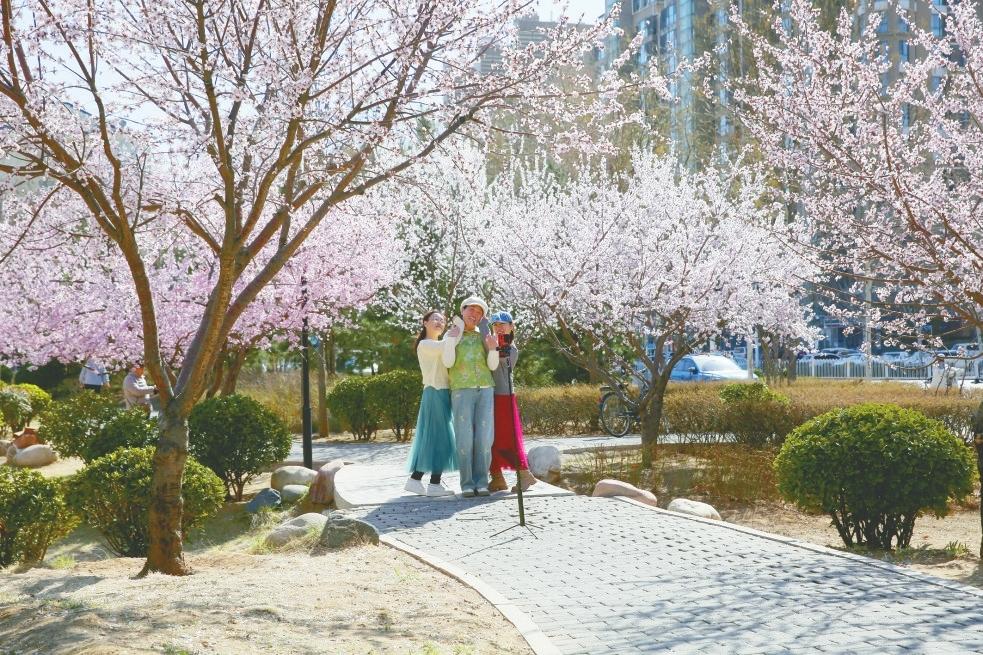 3月17日,春日的阳光照耀在图书馆前的广场上,100余株山桃树开得正盛。“接下来,还会有红叶李、海棠花、美人梅、樱花等20余种花卉陆续开放,打造一幅‘鲜花迎春’的城市园林画卷。”据市城管局园林中心工作人员介绍。