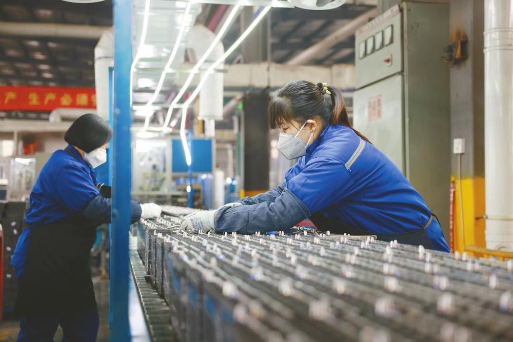近日,位于新河经济开发区的河北永旭电源有限公司工人在动力电池自动化生产线上工作。
