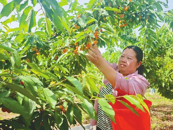 5月12日,临城县黑城镇胶泥沟村的樱桃园里,饱满诱人的果实挂满枝头,吸引众多游客前来体验采摘乐趣。该村因地制宜探索出“党建+产业+旅游”融合发展模式,让更多村民走上致富路。 本报记者赵沙沙 通讯员 陈宁摄