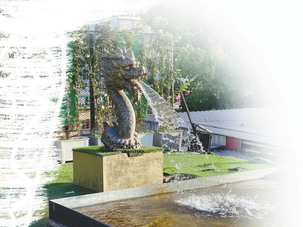 飞龙泉,这个沉睡多年的古老泉眼,如今正焕发出前所未有的活力。记者走近泉池,只见直径约两米的圆形泉池中,清澈的泉水汩汩涌出,在阳光的照耀下波光粼粼。最引人注目的是屋顶上那条栩栩如生的飞龙雕塑,泉水从龙口喷涌而出,形成一道优美的弧线,最终落入下方的水池,溅起朵朵晶莹的水花。