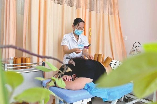 6月4日,市民在邢台医学院第二附属医院“泉城扁鹊堂”体验火罐养生。