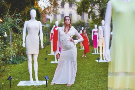 在米兰国际时装周期间,以静态艺术展形式展示清河羊绒服饰。