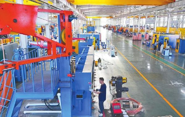 近日,在宁晋县缆芯高导河北科技有限公司车间内,工人正在进行生产设备作业。