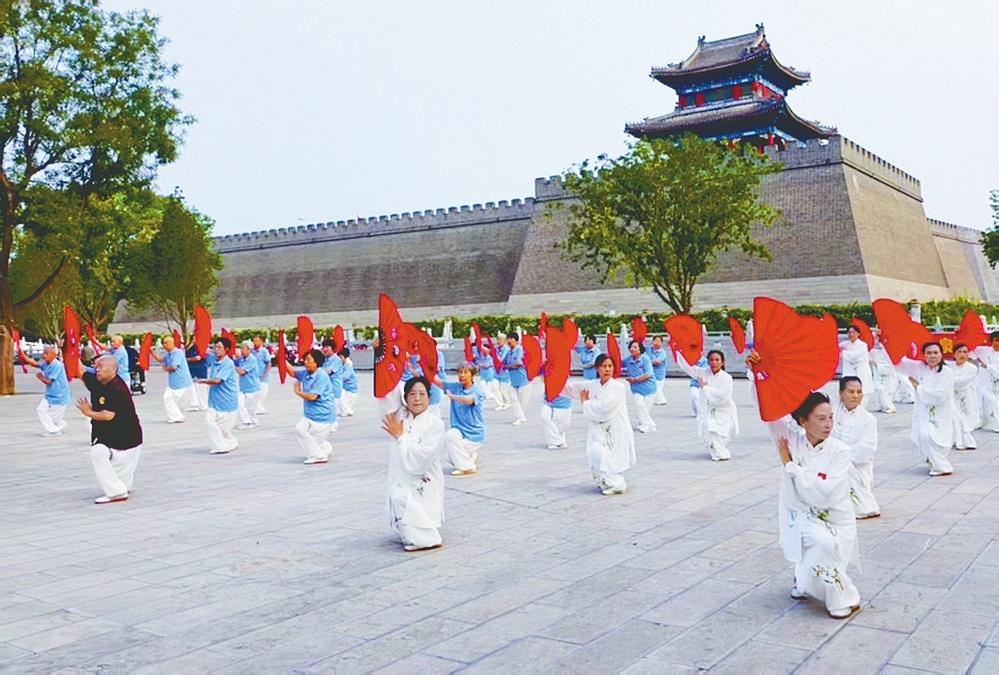 近日,市民在古城墙下练习太极扇。近年来,我市大力实施“文化兴市”战略,邢州古城再现昔日繁华,文旅新业态不断涌现,成为人们休闲娱乐的好去处。
