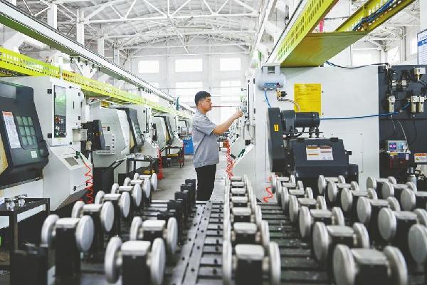 近日,位于隆尧县远大阀门集团有限公司高端锻造智能制造车间内,工人正在操控桁架式机械手加工阀门产品。