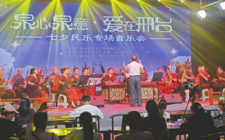 8月29日,由市文广旅局主办、市群艺馆承办的“泉心泉意·爱在邢台”七夕民乐音乐会在邢州曲艺社举行,市民在悠扬的民乐声中品味传统文化的独特魅力,感受邢台深厚的文化底蕴。 黄涛摄