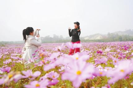 10月28日,隆尧县尧山的格桑花进入最佳观赏期,绚烂的花海吸引众多游客前来打卡。