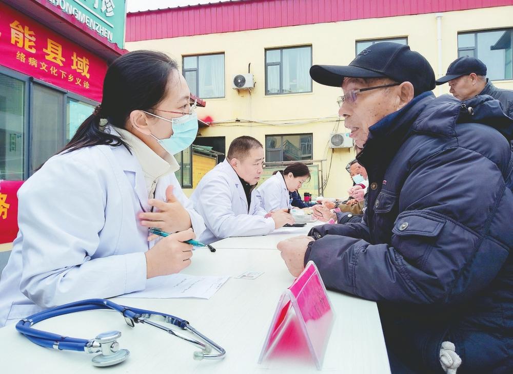 医生对居民进行健康指导。资料图片