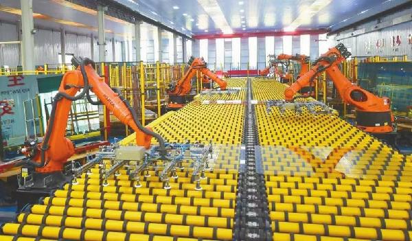 河北德金玻璃有限公司生产车间,机械手正在搬运玻璃原片。 资料图片