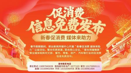 本报讯(记者王芳)马年新春,为深入贯彻我市促消费工作部署,进一步激发节日市场活力,邢台新闻传媒中心即日起推出“新春促消费媒体来助力”公益活动,充分发挥主流媒体传播优势,“报台网端微屏”等全媒体矩阵对文旅、餐饮、零售、房产、汽车等行业的促消费信息免费发布。
