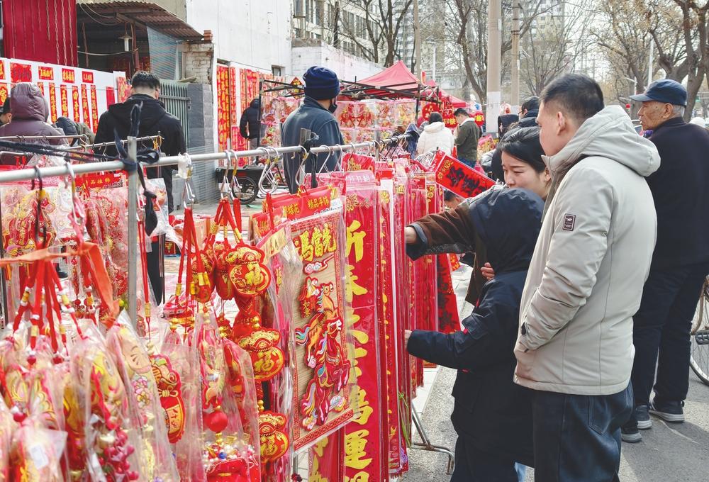 2月15日,市民在冶金南路年货街选购年货。市区年货街内商品丰富齐全,涵盖春联福字、糖果、特色年货等,成为市民购物的好去处。 韩文洲摄